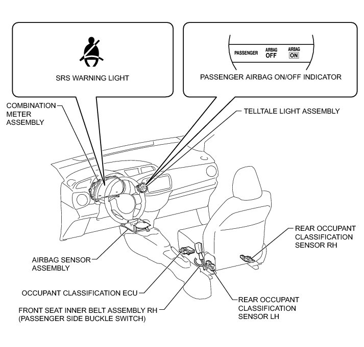 SUPPLEMENTAL RESTRAINT SYSTEMS: OCCUPANT CLASSIFICATION SYSTEM (for Hatchback): PARTS LOCATION