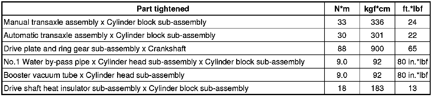SPECIFICATIONS: 1NZ-FE ENGINE MECHANICAL (for Hatchback): TORQUE SPECIFICATIONS