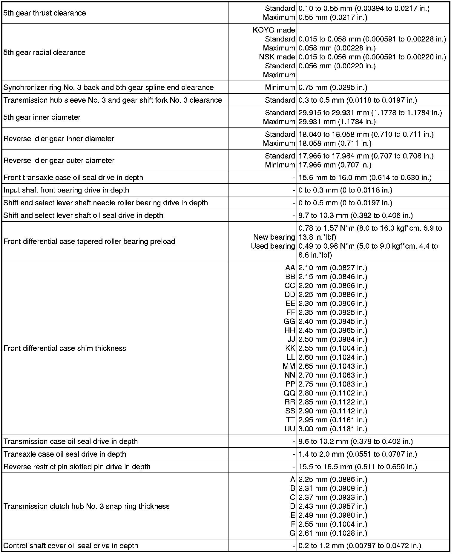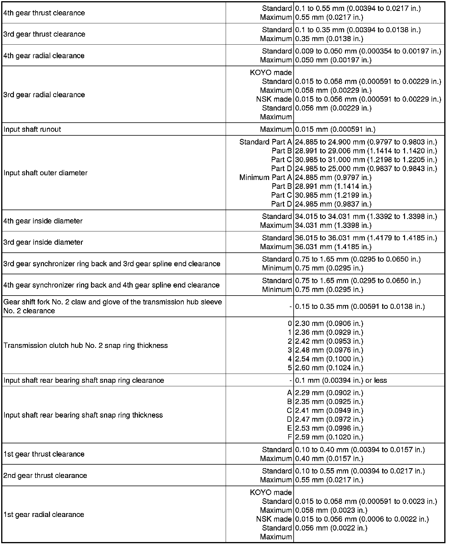 SPECIFICATIONS: C50 MANUAL TRANSMISSION / TRANSAXLE (for Hatchback): SERVICE DATA