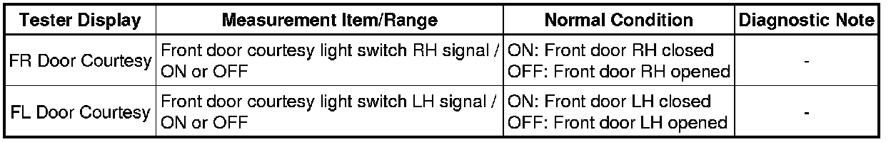 WINDOW / GLASS: POWER WINDOW CONTROL SYSTEM (for Hatchback): DATA LIST / ACTIVE TEST