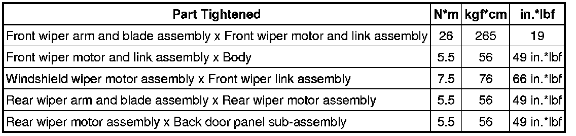 SPECIFICATIONS: WIPER / WASHER (for Hatchback): TORQUE SPECIFICATIONS