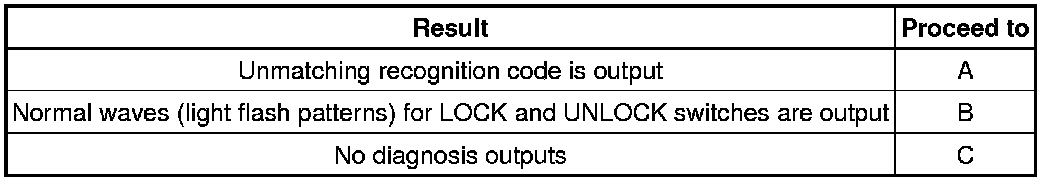 (a) When a new or normally functioning door lock control transmitter switch for the same type vehicle is held down, check that an unmatching recognition code is output.