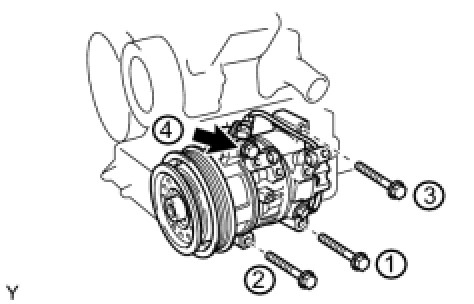 Tighten the bolts in the sequence shown in the illustration to install the compressor.