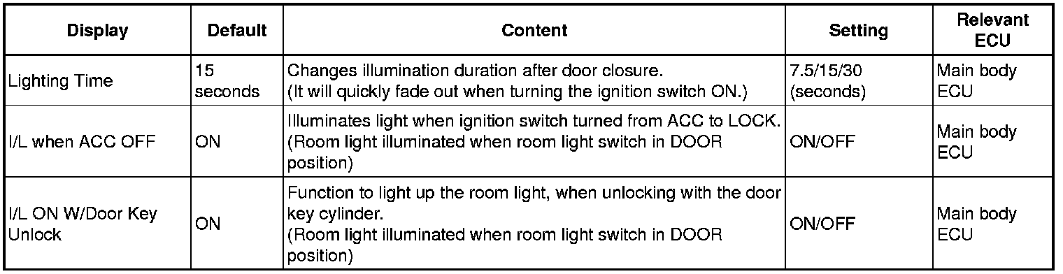 LIGHTING (INT): LIGHTING SYSTEM (for Sedan): CUSTOMIZE PARAMETERS