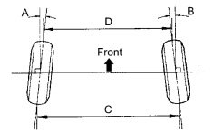 If the right and left inside wheel angles are not within the specified range, check the right and left rack end lengths.