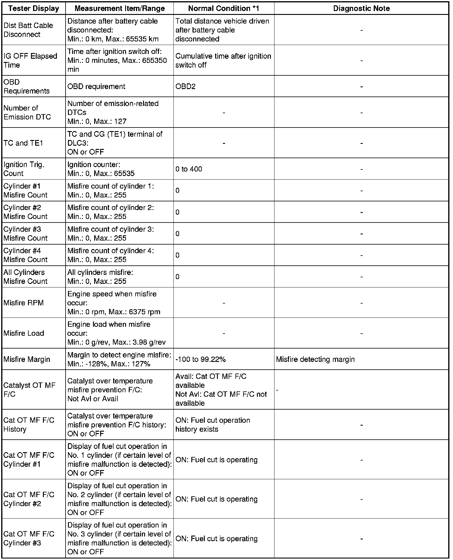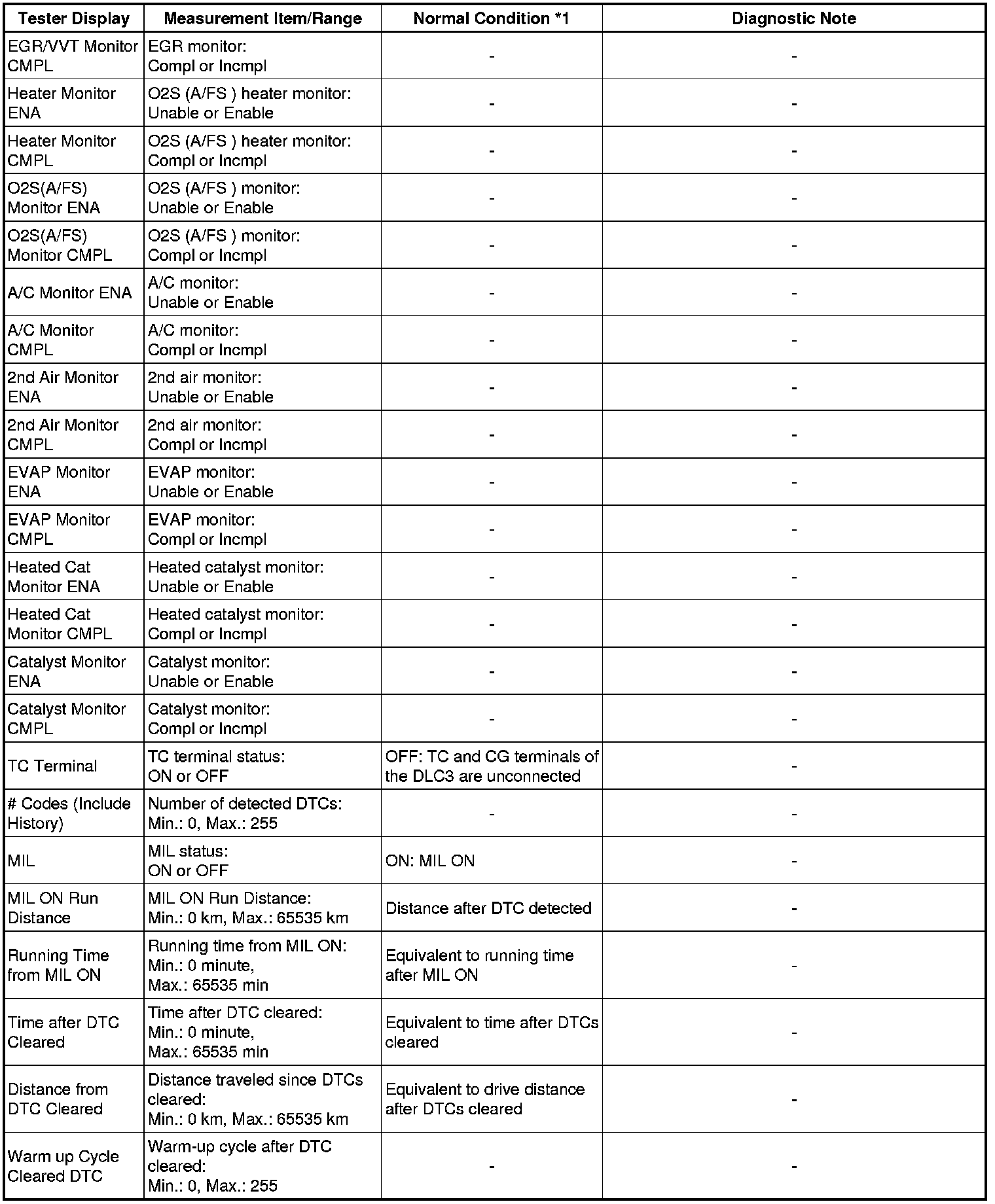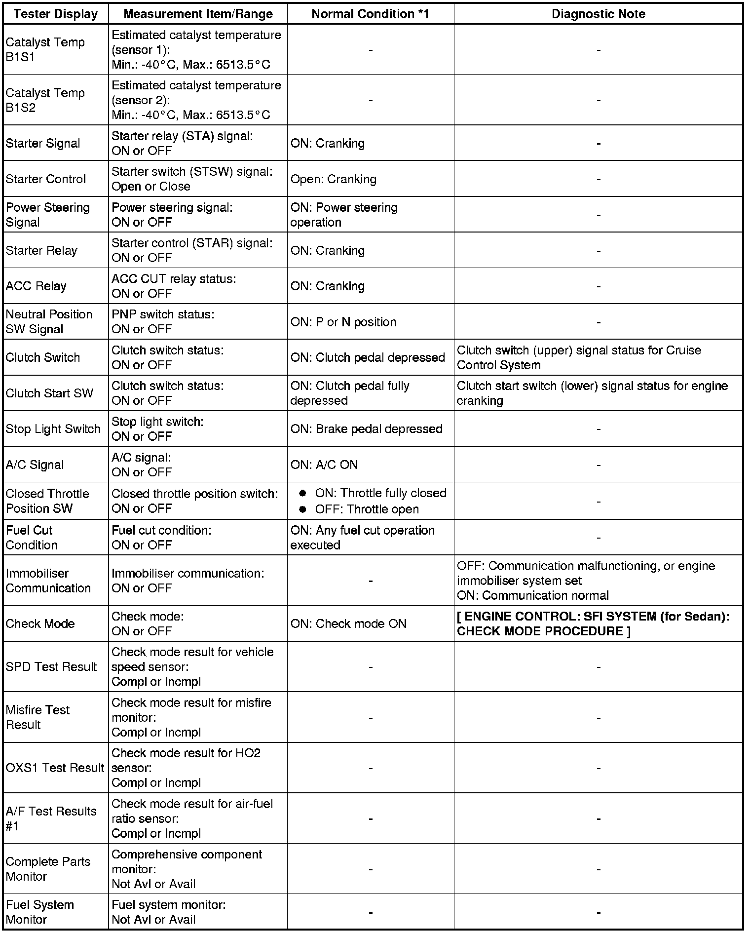 * *1: If no idling conditions are specified, the transmission gear selector lever should be in the N or P position (neutral), and the A/C switch and all accessory switches should be OFF.