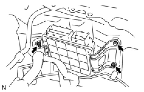 (c) Remove the bolt and 2 nuts and remove the ECM.