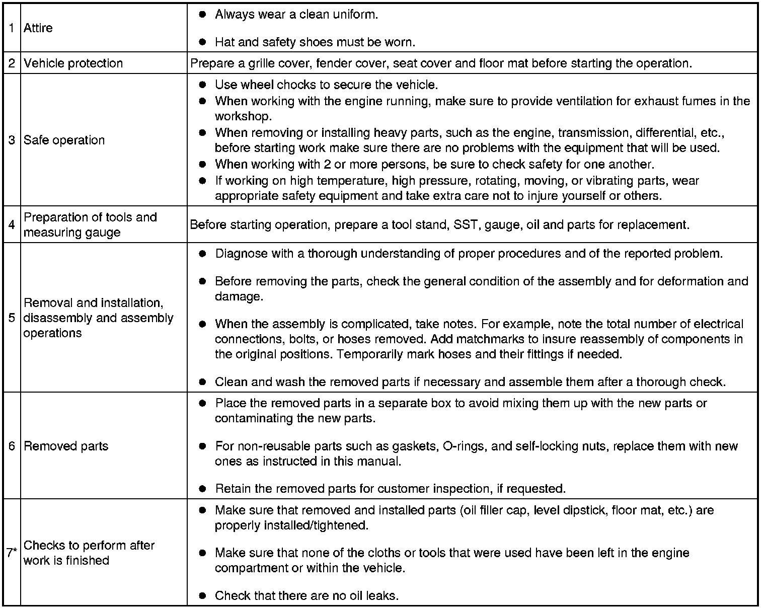 (2) Be sure to follow the instructions for work preparation and final confirmation of proper operation of the VSC system.