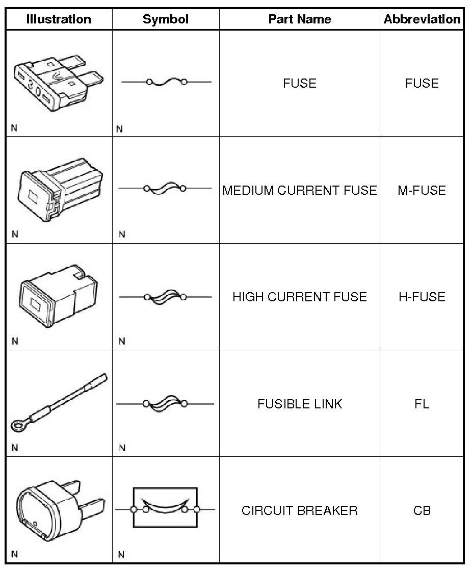(2) If the wire of a fuse is broken, confirm that there are no shorts in its circuit.