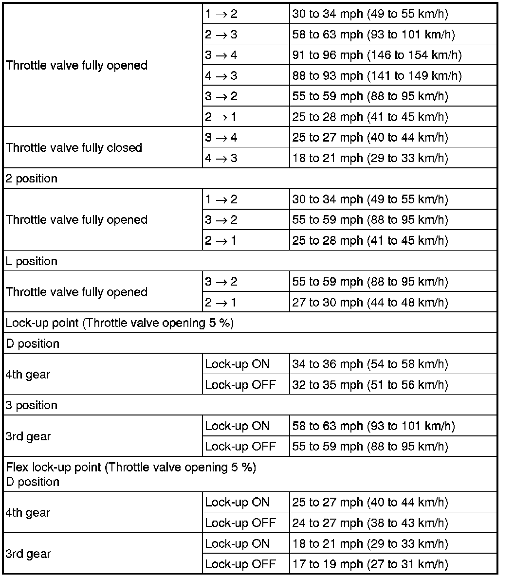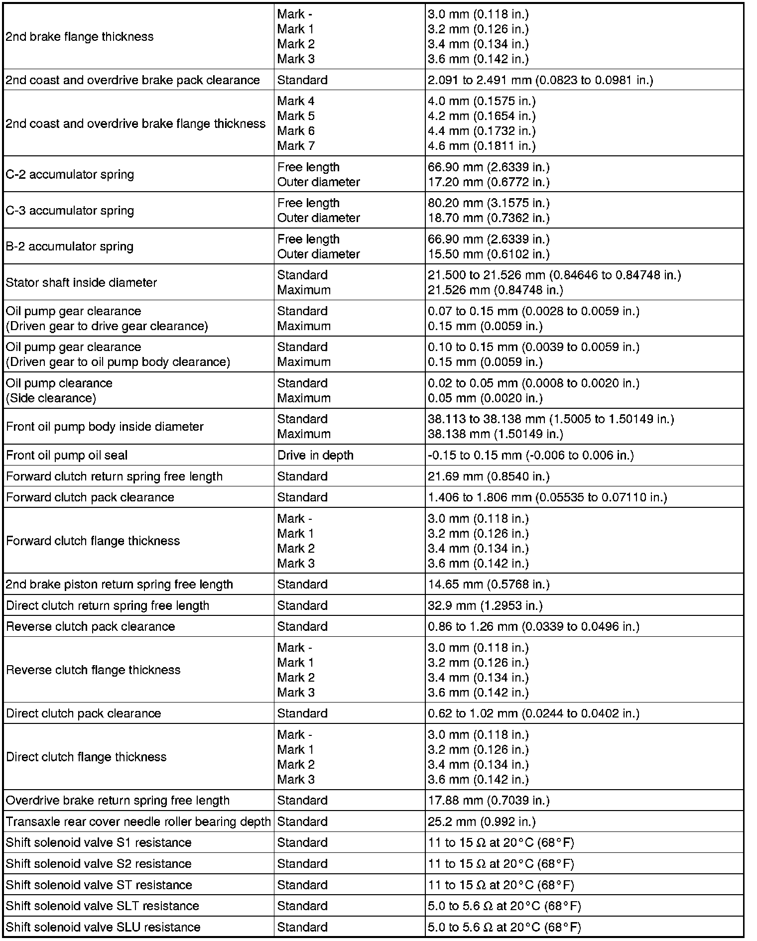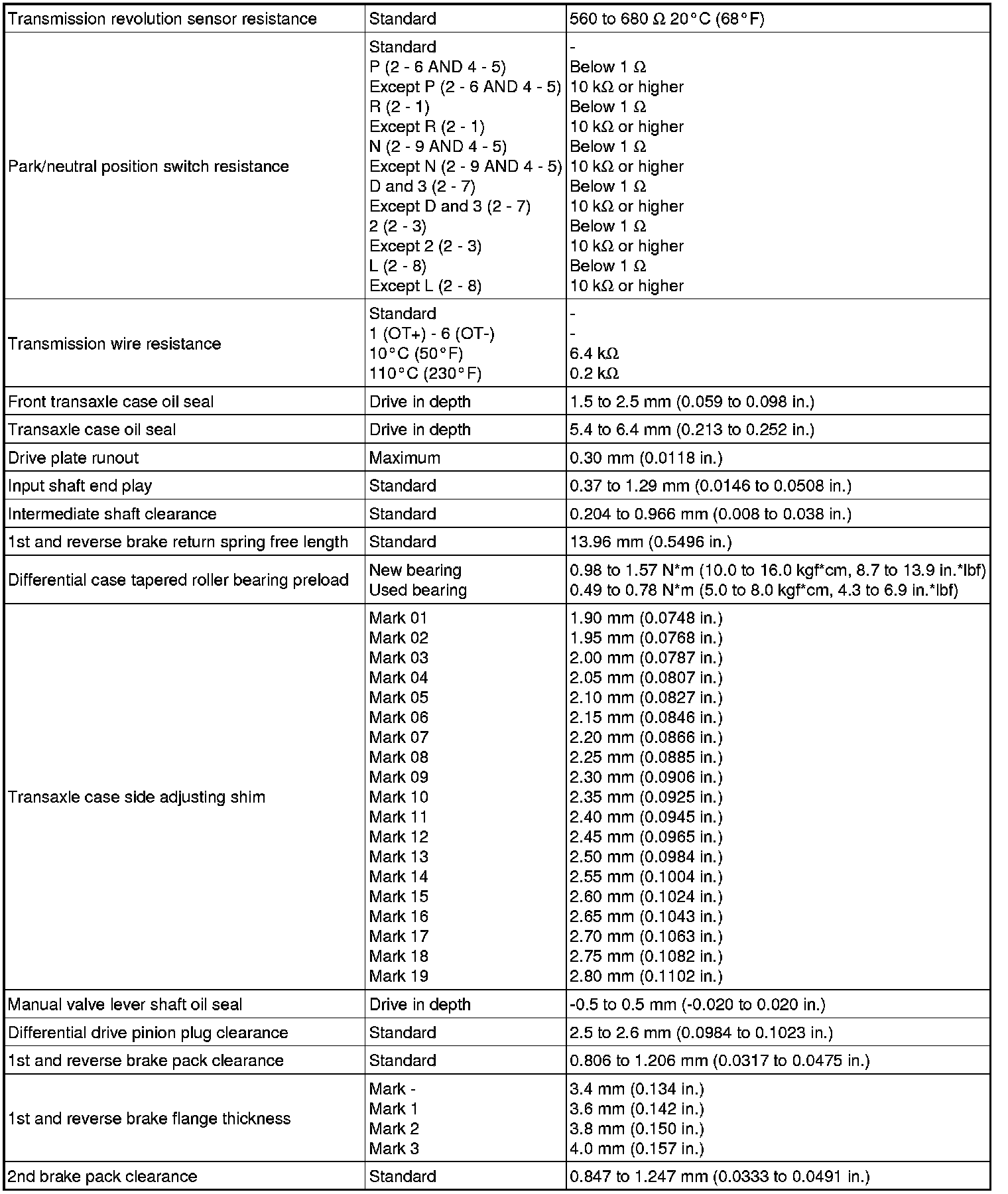 SPECIFICATIONS: U340E AUTOMATIC TRANSMISSION / TRANSAXLE (for Sedan): SERVICE DATA
