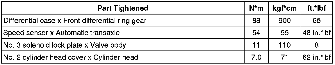 SPECIFICATIONS: U340E AUTOMATIC TRANSMISSION / TRANSAXLE (for Sedan): TORQUE SPECIFICATIONS