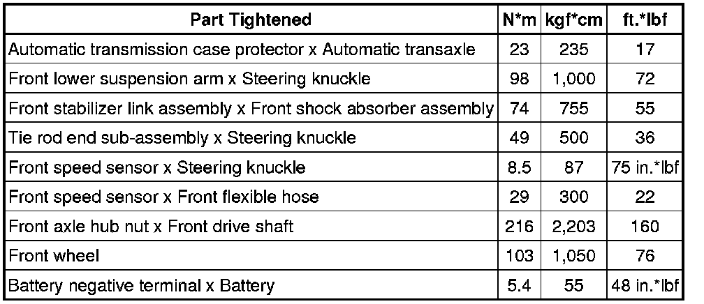 SPECIFICATIONS: DRIVE SHAFT / PROPELLER SHAFT (for Sedan): TORQUE SPECIFICATIONS