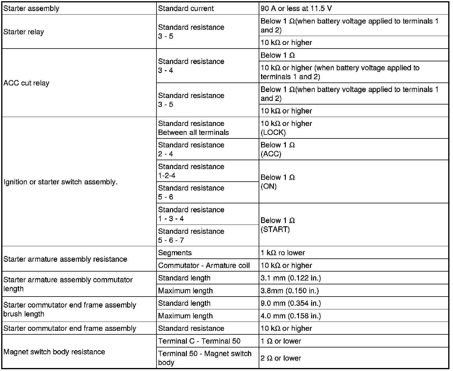 SPECIFICATIONS: 1NZ-FE STARTING (for Sedan): SERVICE DATA