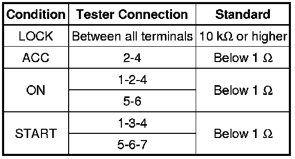 1NZ-FE STARTING: IGNITION SWITCH (for Sedan): INSPECTION