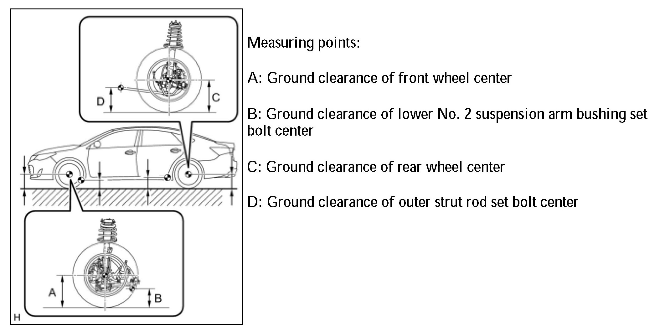 - The standard value shown here is a value that is used for performing a wheel alignment and does not indicate the height of an actual vehicle.
