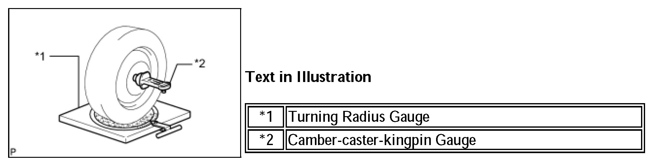 a. Install a camber-caster-kingpin gauge and place the front wheels on the center of a turning radius gauge.