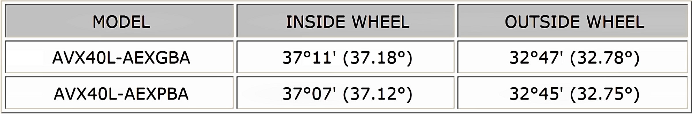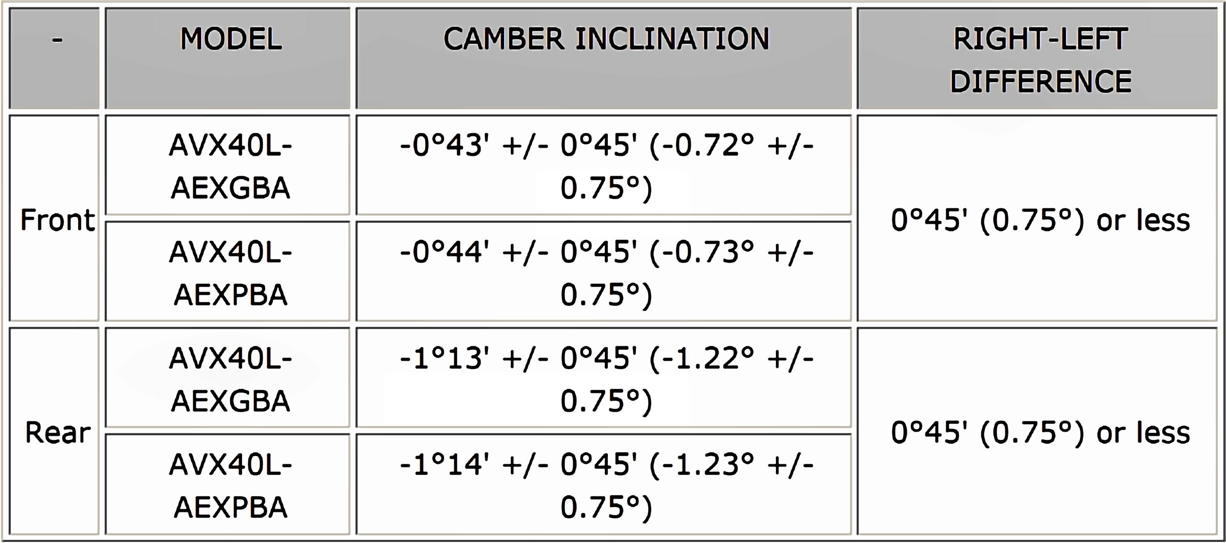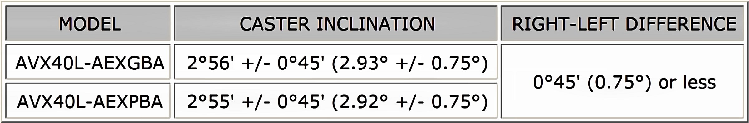 Wheel Alignment Specifications (Unloaded Vehicle)