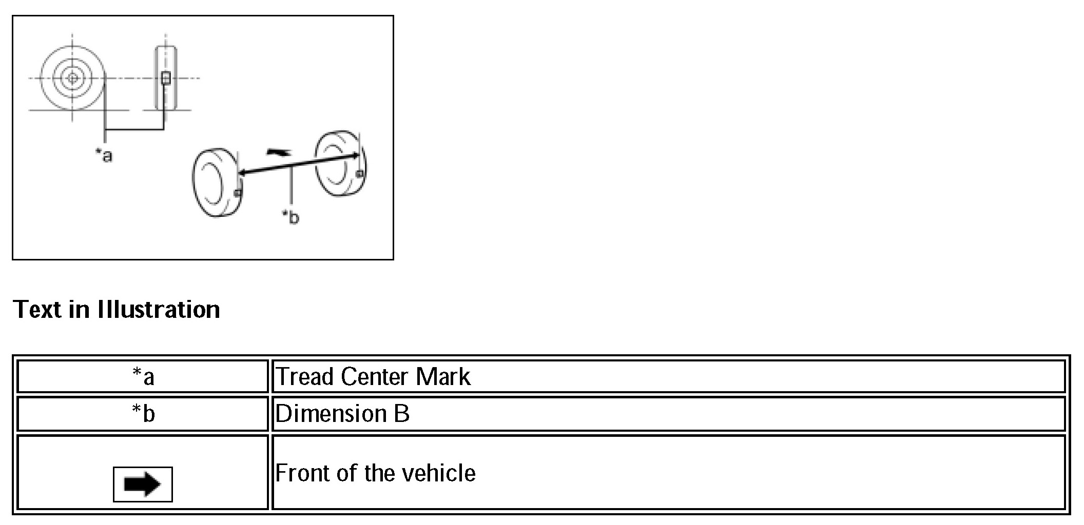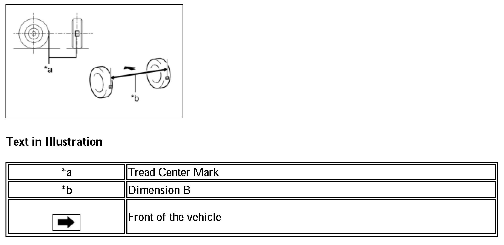 d. Put tread center marks on the rearmost points of the front wheels and measure the distance between the marks (dimension B).
