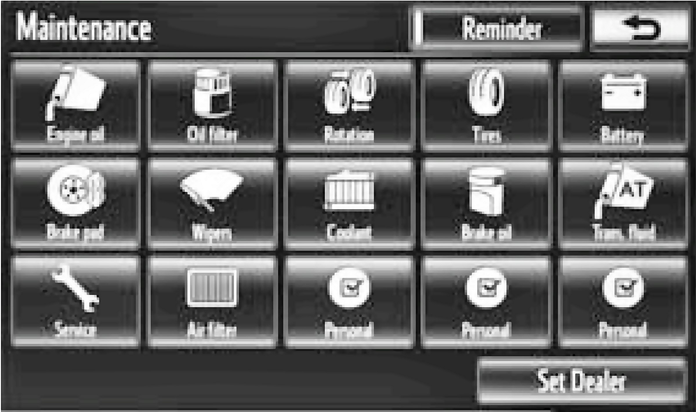 [3] Touch "Maintenance" on the "Vehicle Settings" screen.