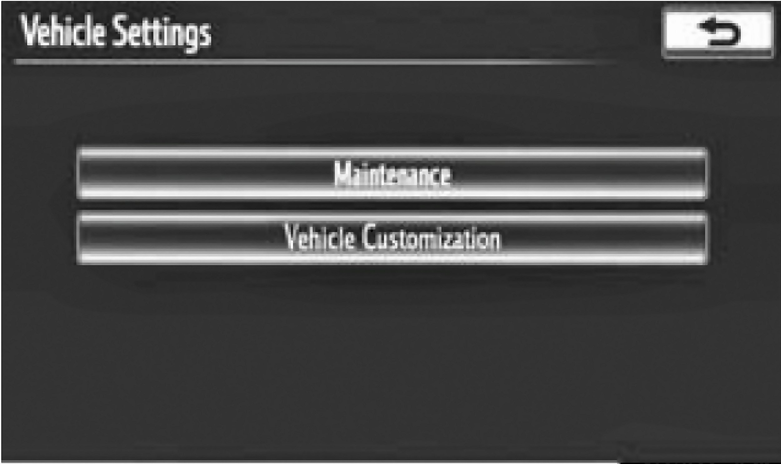 3. Touch "Maintenance" on the "Vehicle Settings" screen.