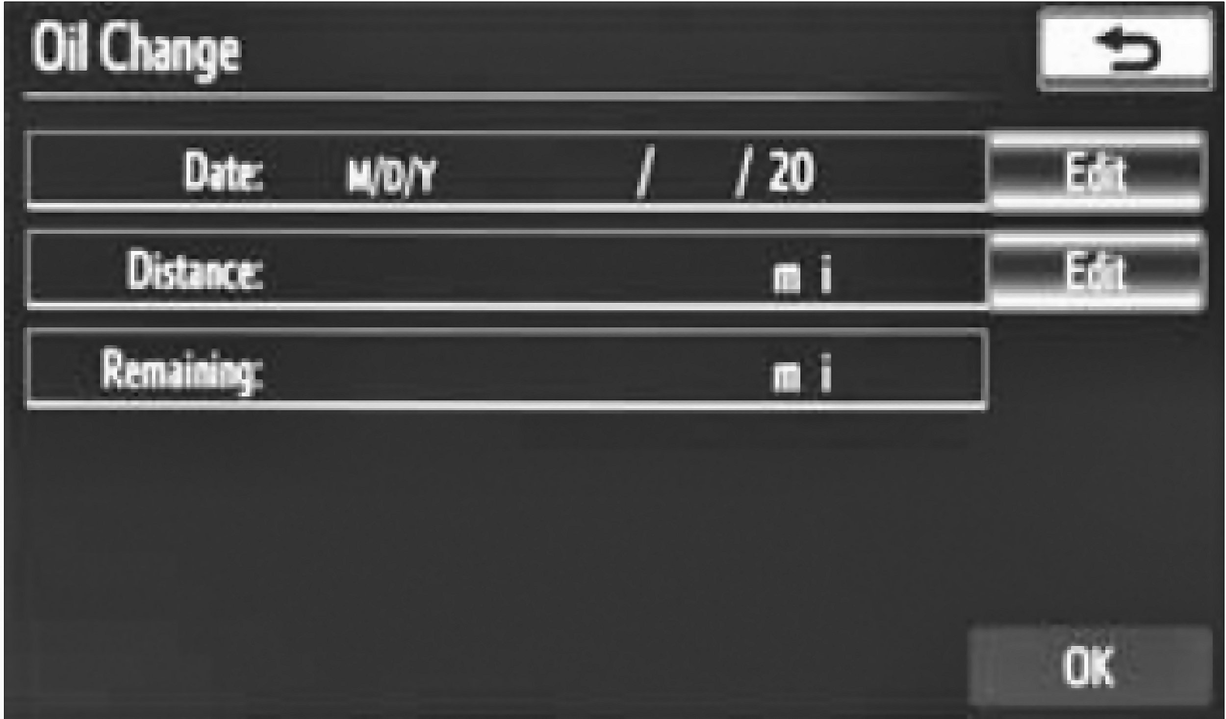 "Distance": Touch to input the driving distance until the next maintenance check.
