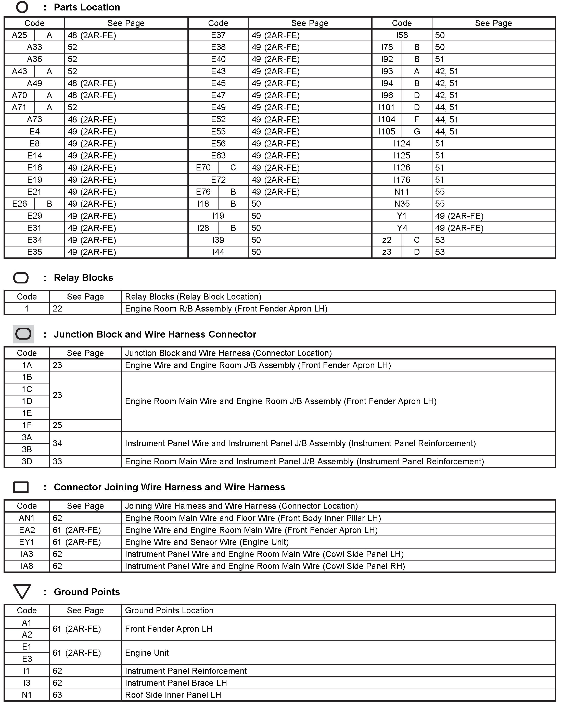 Locations: The locations of components, connectors, ground points, and splices referred to within these diagrams can be found at Vehicle Locations. Locations