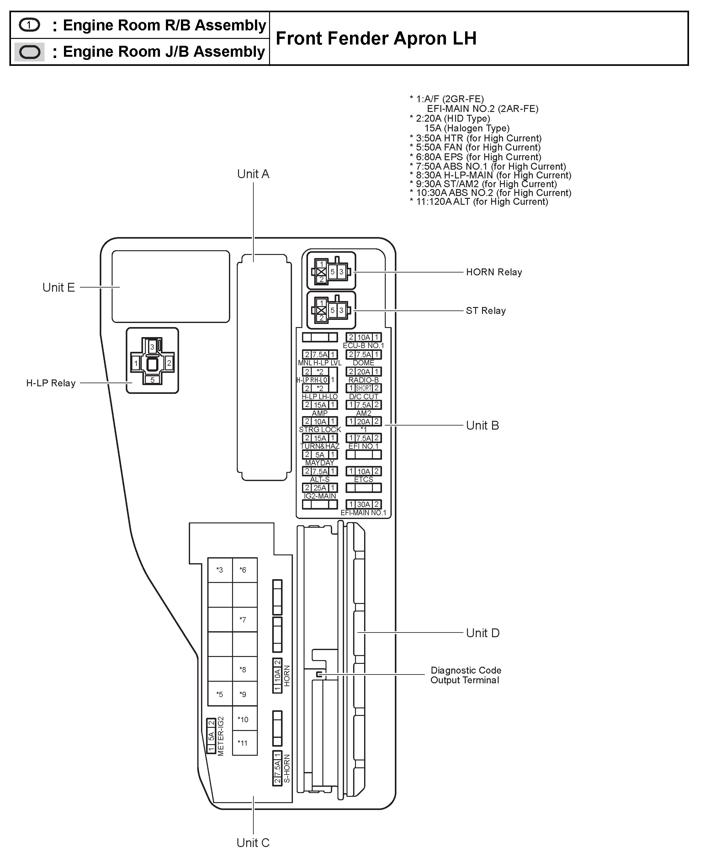 Engine Room R/B Assembly, Engine Room J/B Assembly - Front Fender Apron LH: