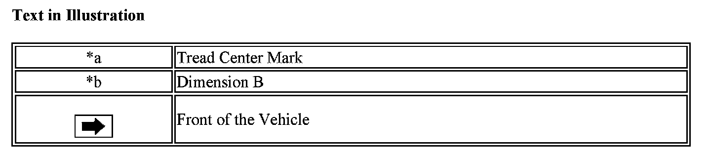 d. Put tread center marks on the rearmost points of the front wheels and measure the distance between the marks (dimension B).
