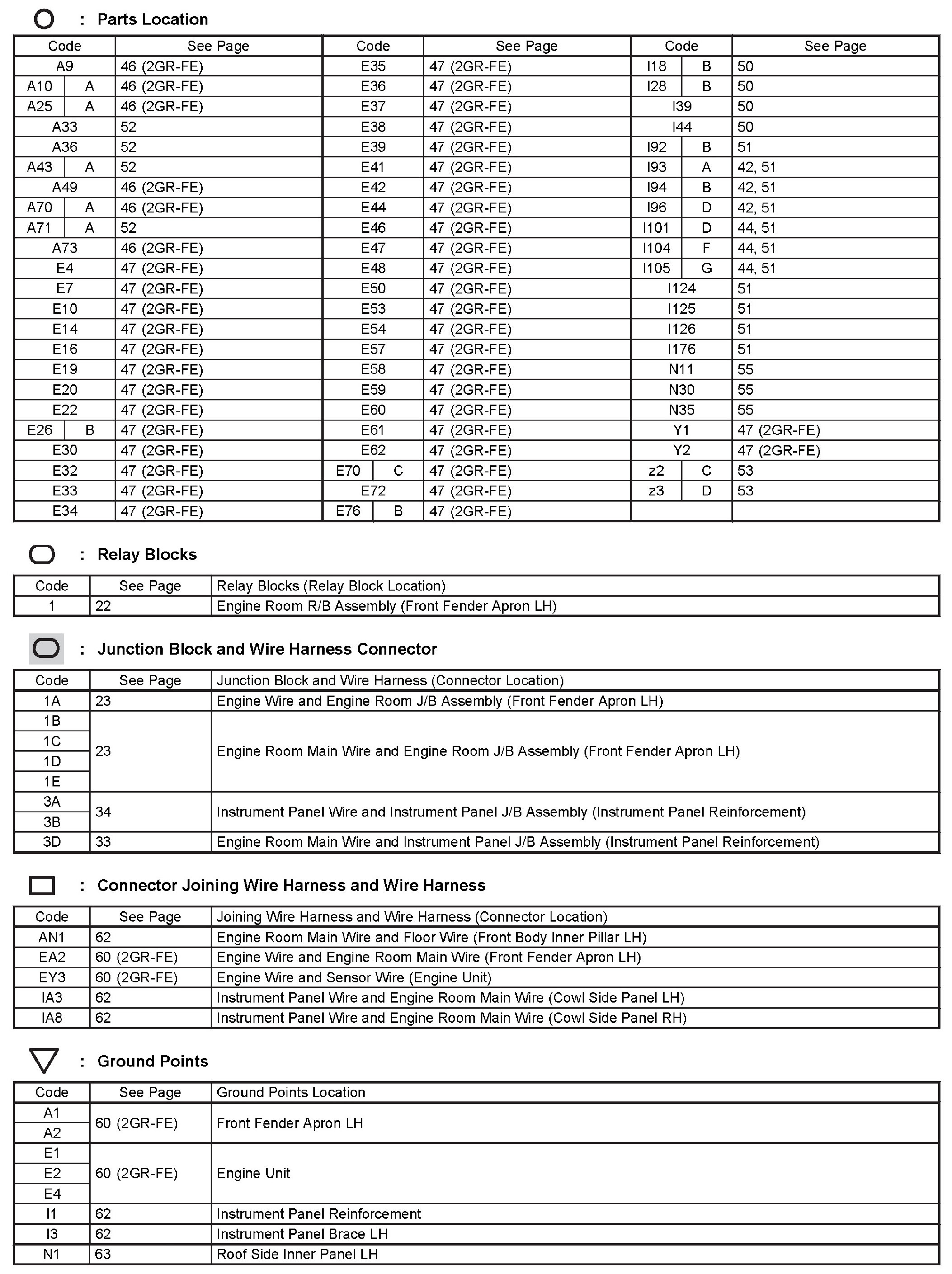 Locations: The locations of components, connectors, ground points, and splices referred to within these diagrams can be found at Vehicle Locations. Locations