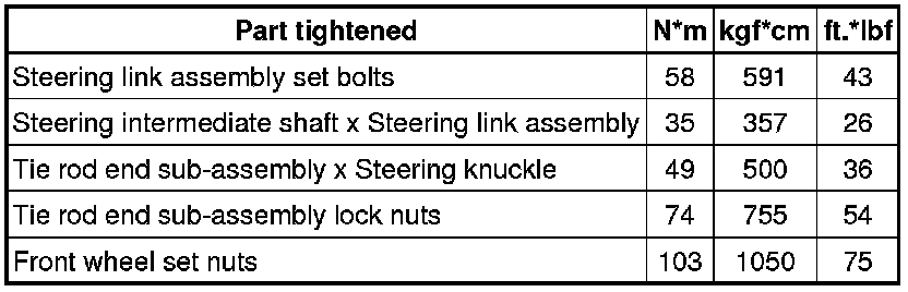 / LINKAGE: TORQUE SPECIFICATIONS; 2013 MY Corolla [07/2012 -]