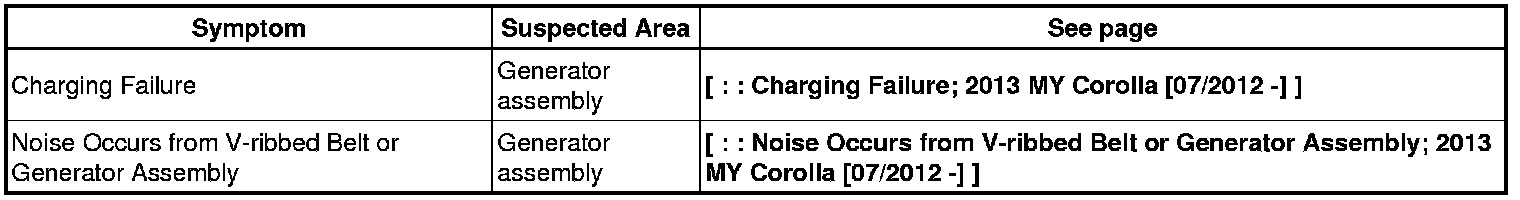 : PROBLEM SYMPTOMS TABLE; 2013 MY Corolla [07/2012 -]