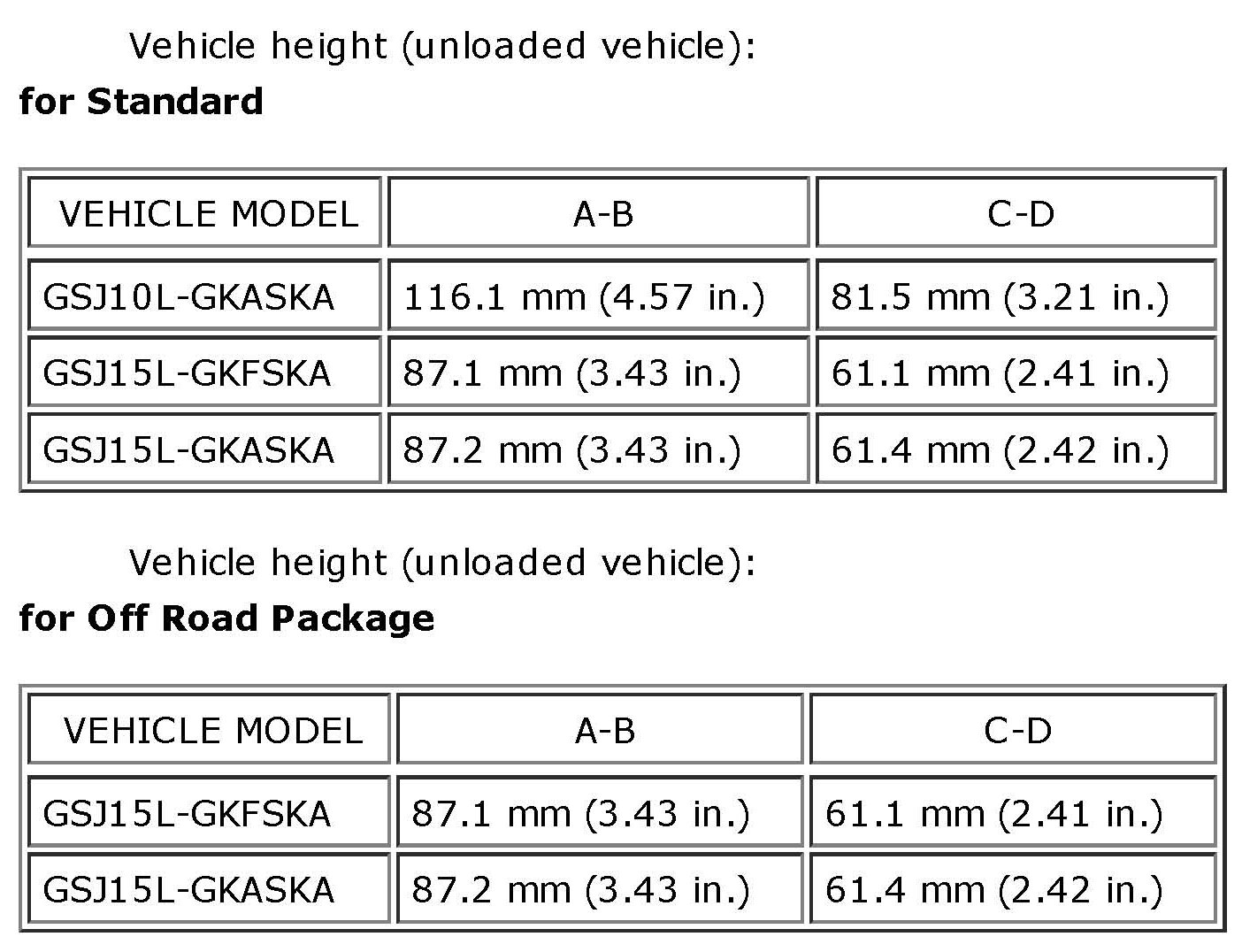 Front Wheel Alignment Specifications (Unloaded Vehicle)