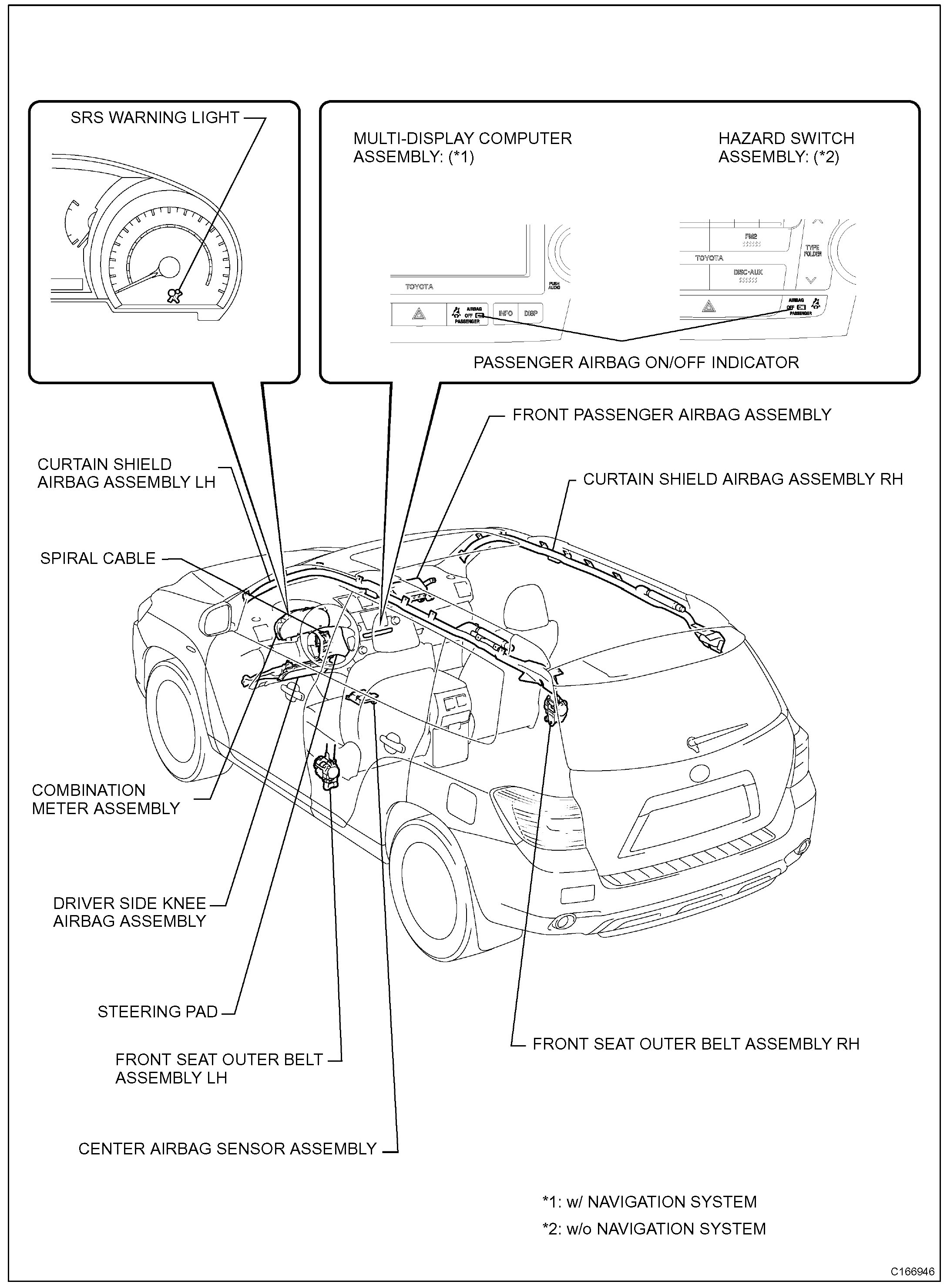1. Refer to the TOYOTA repair procedures for the SRS airbag system inspection procedures.