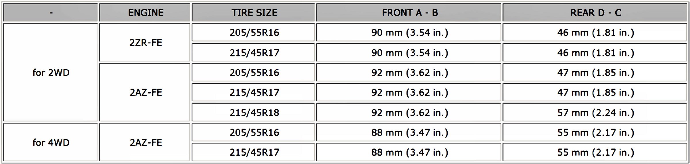 Measuring points (for Double Wishbone Type Suspension):