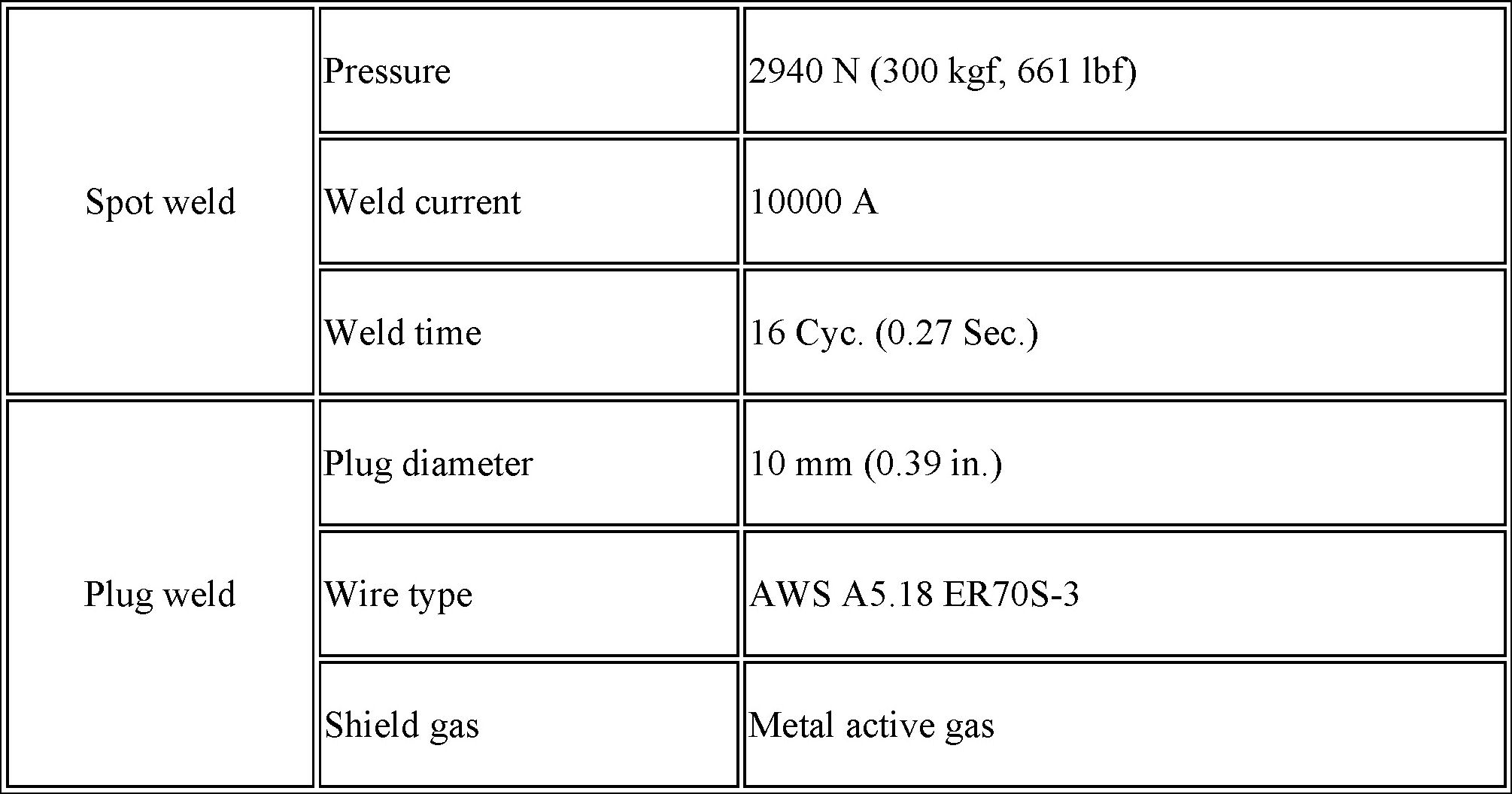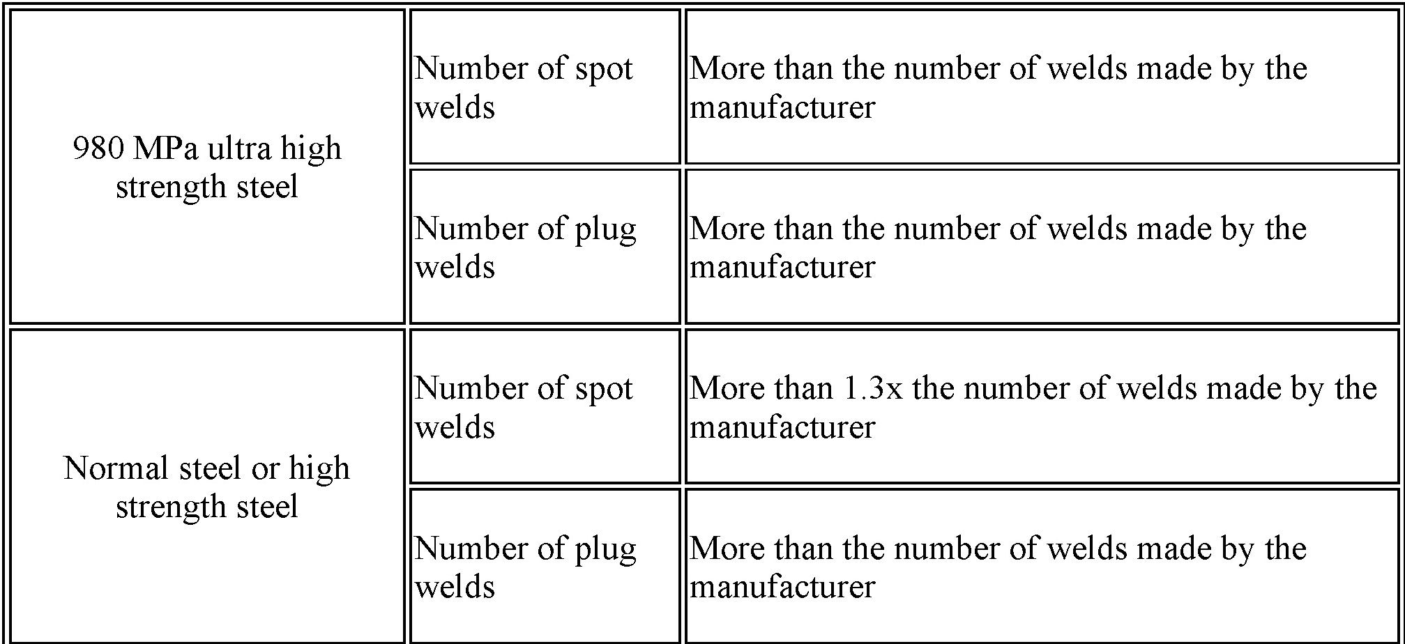 (a) Follow the welding conditions below when welding ultra high strength steel to assure sufficient weld strength.