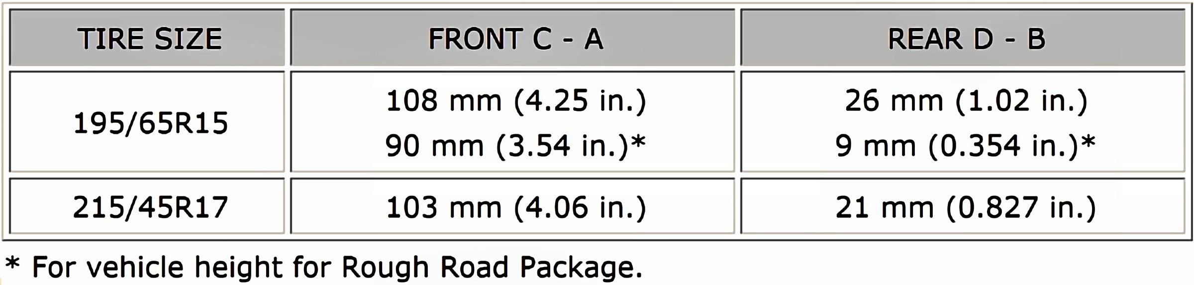 D: Ground clearance of rear wheel center