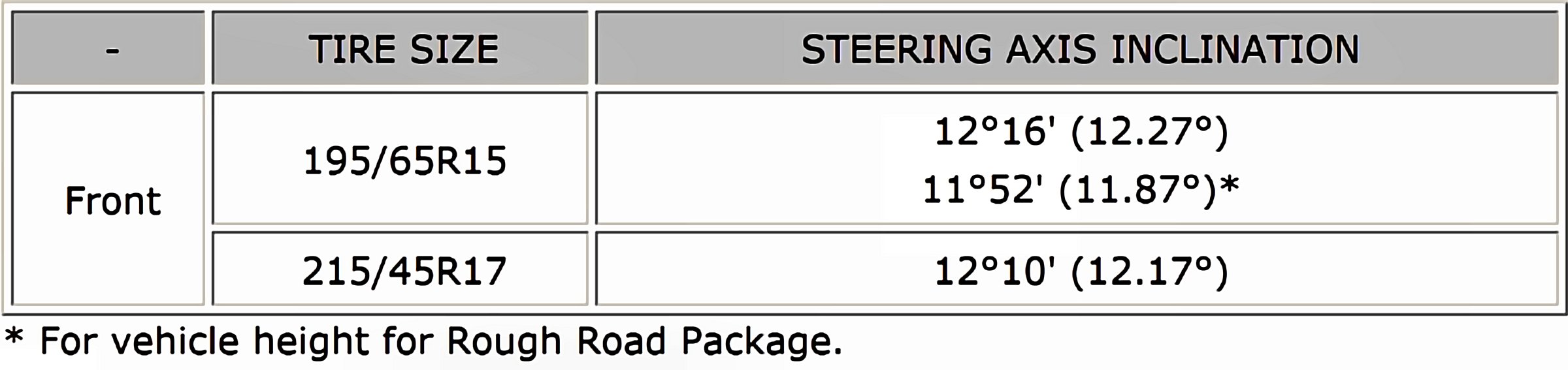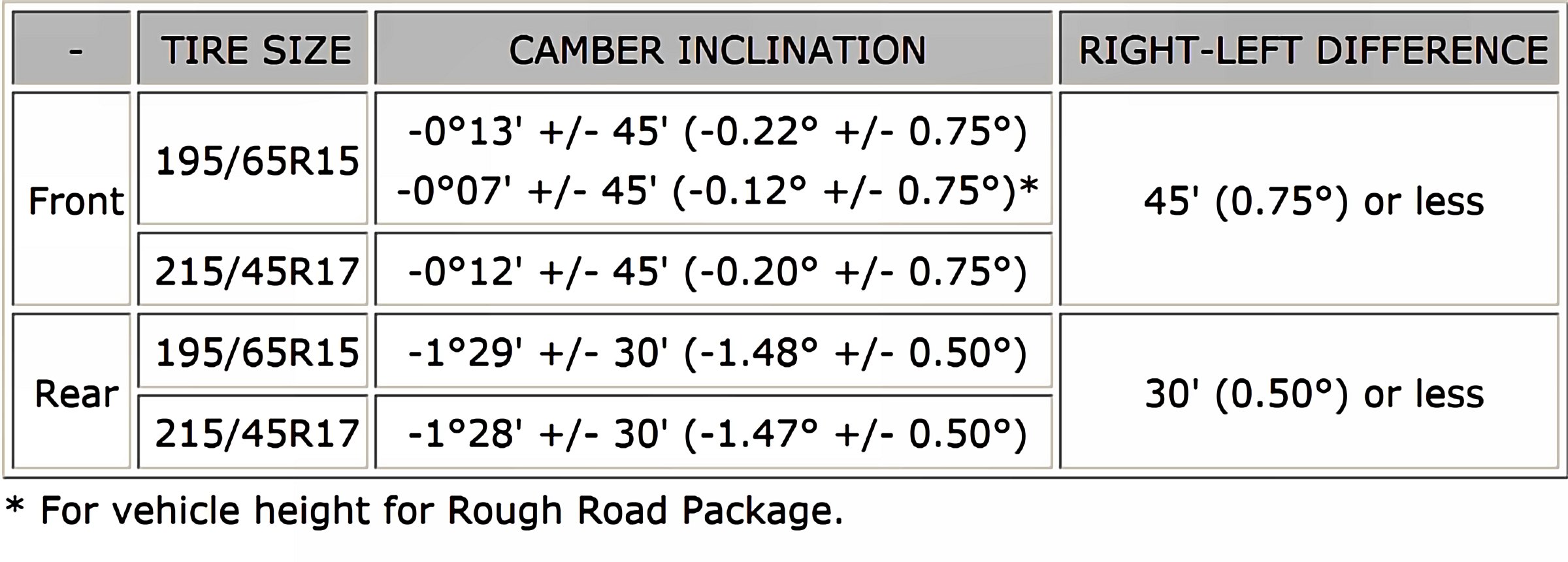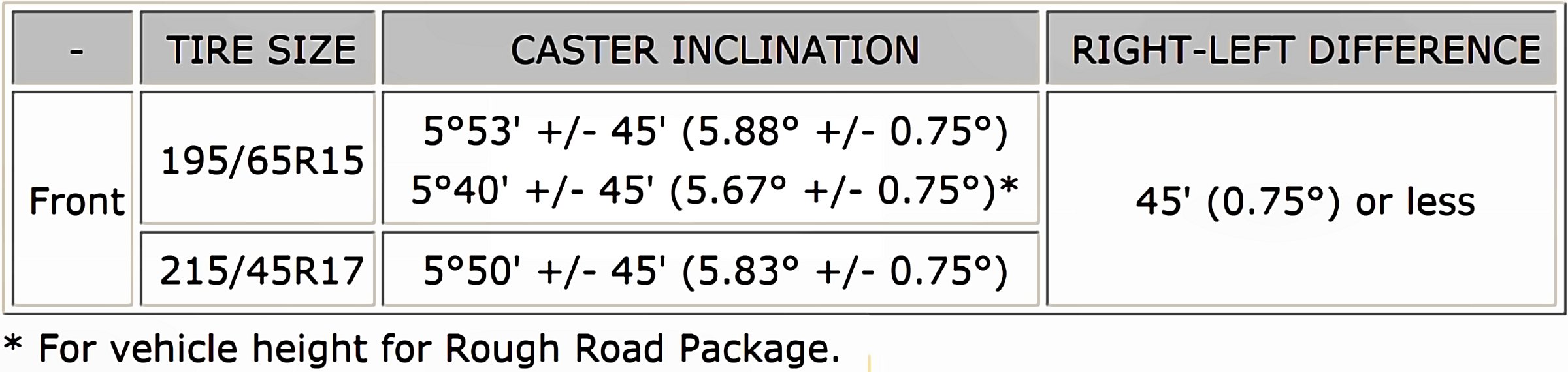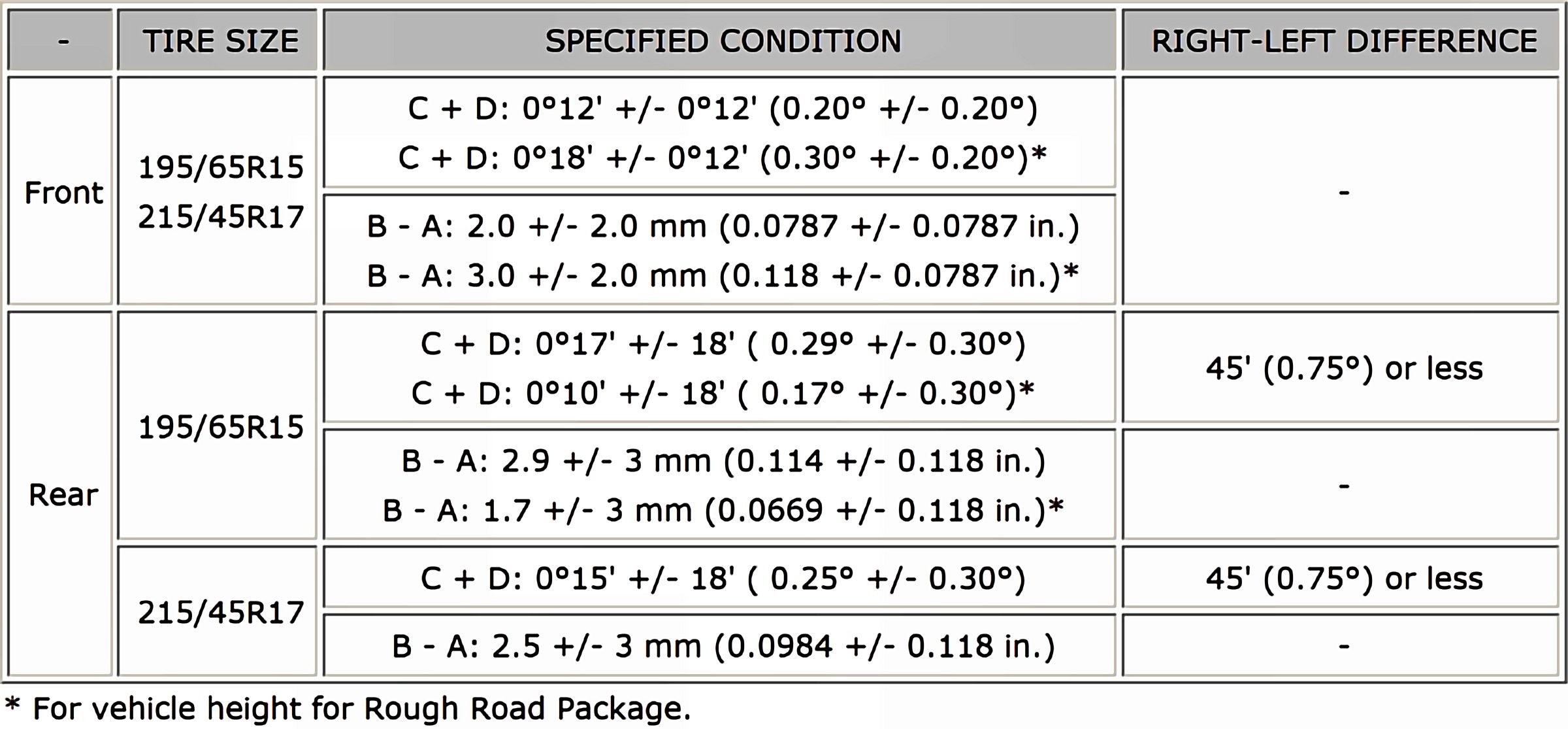 Wheel Alignment Specifications (Unloaded Vehicle)
