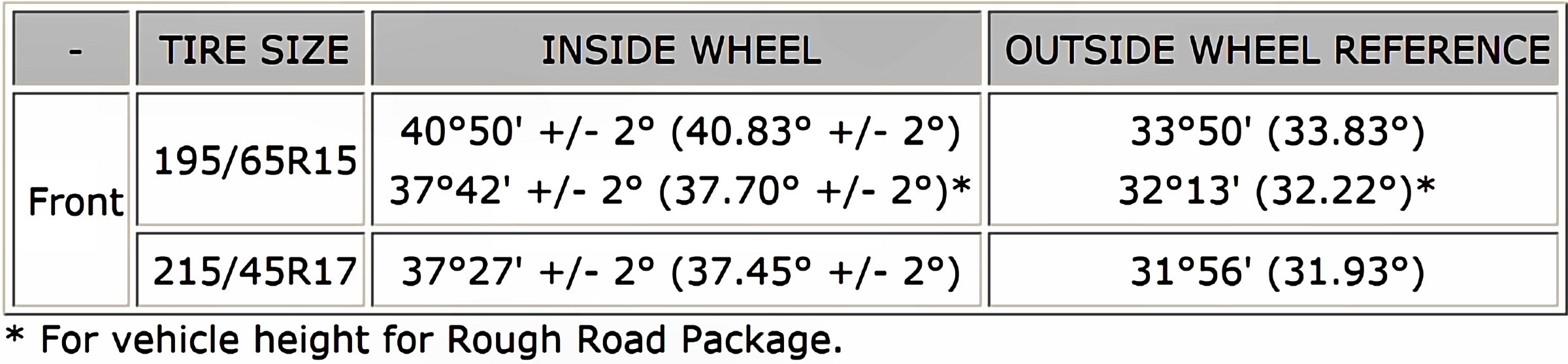 Wheel Turning Angle:
