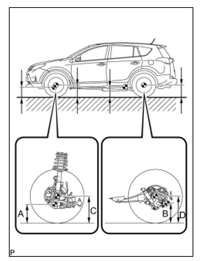- Before inspecting the wheel alignment, adjust the vehicle height to the specified value.