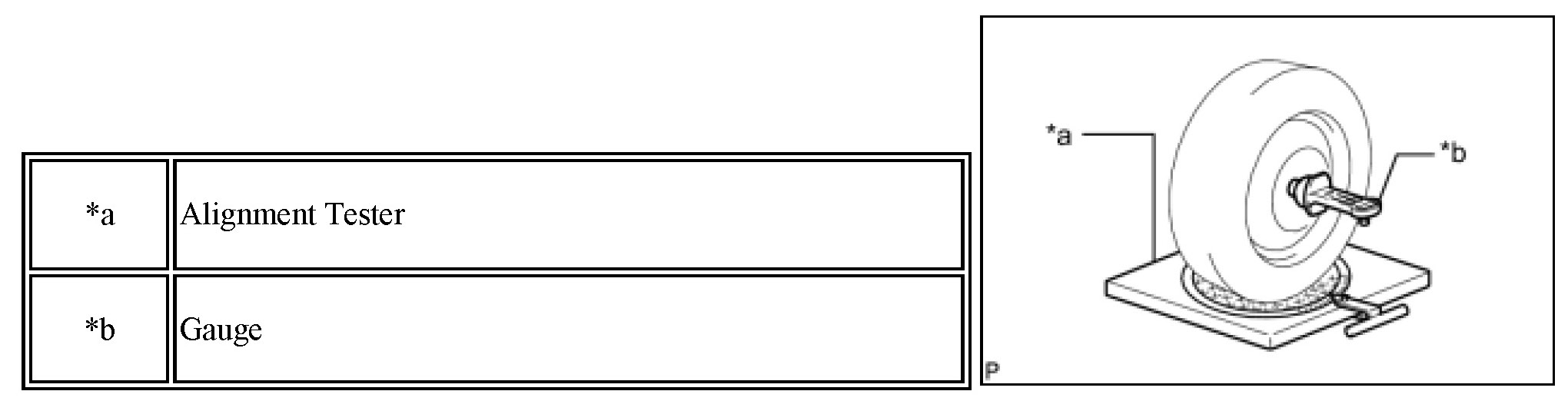 1. Install a camber-caster-kingpin gauge or place the front wheels on the center of a wheel alignment tester.