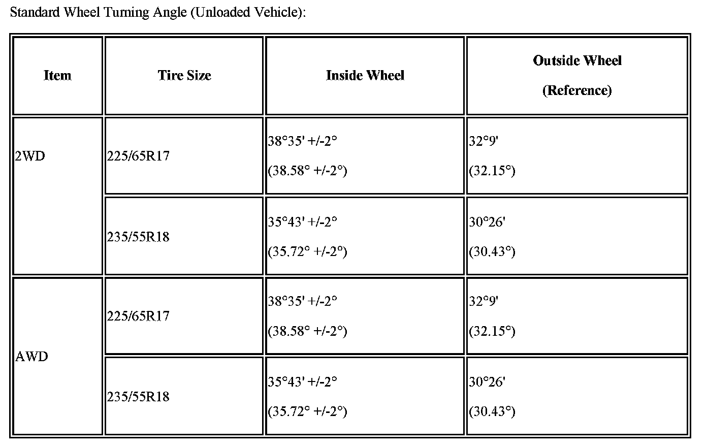 1. Turn the steering wheel to the left and right full lock positions and measure the turning angle.