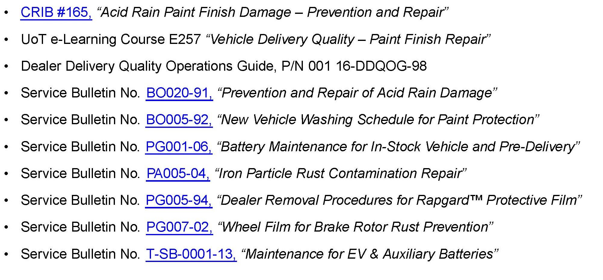 Listed below are additional resources, which will help you with vehicle receipt, inspection and storage procedures.