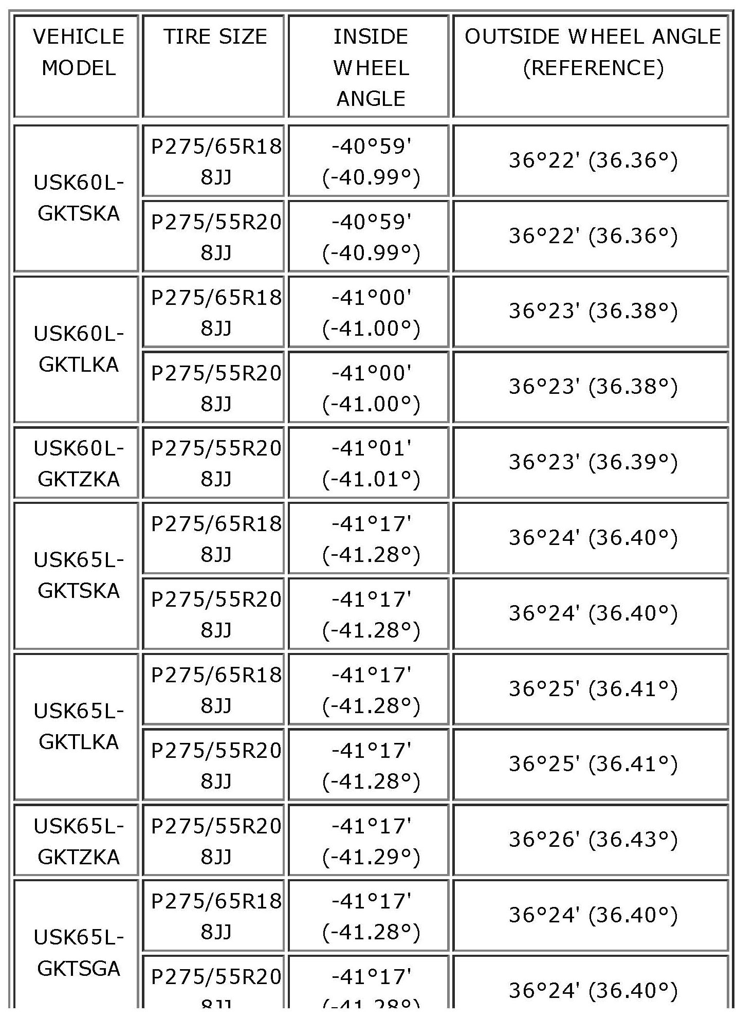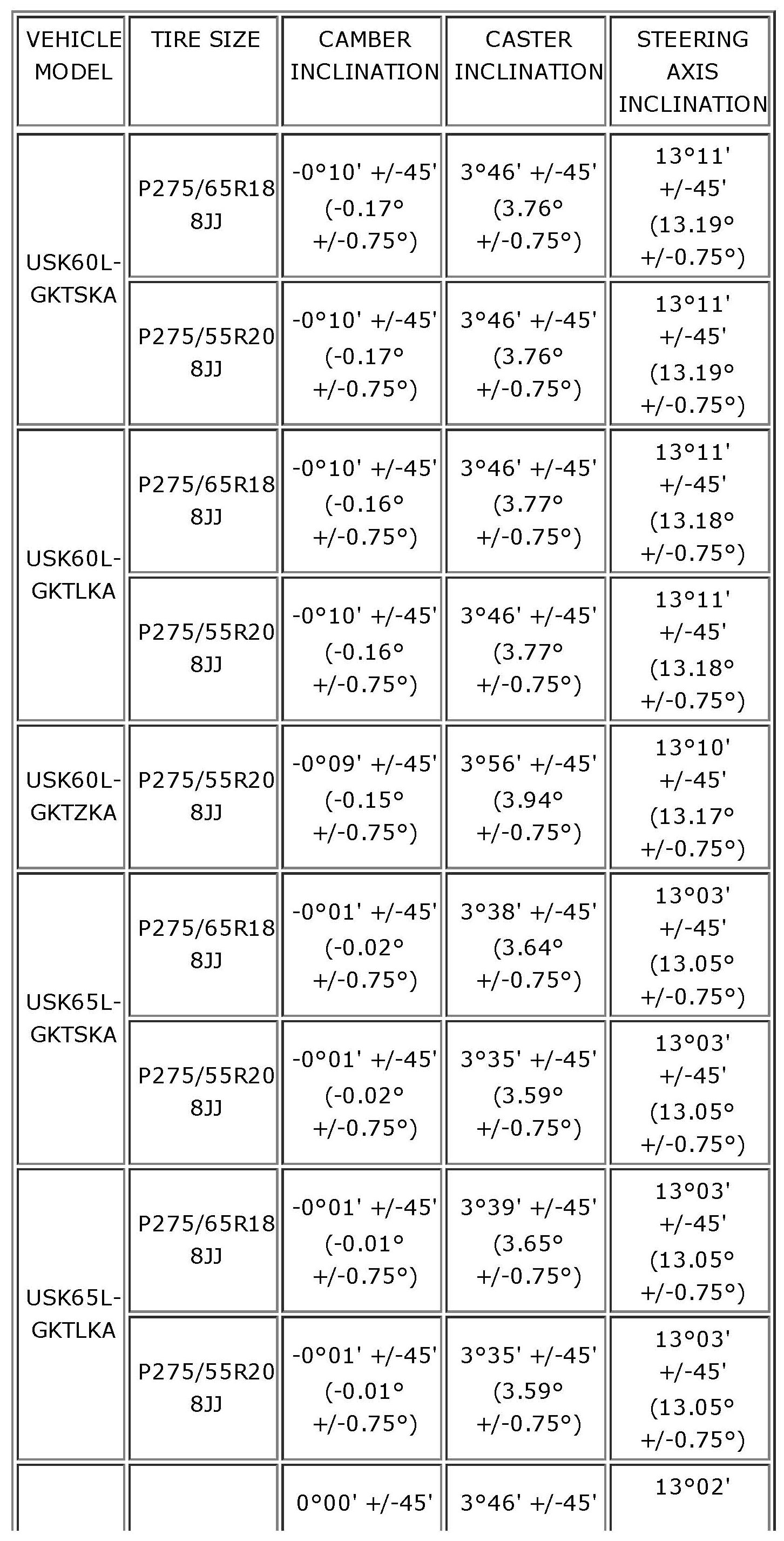 Front Wheel Alignment Specifications (Unloaded Vehicle)
