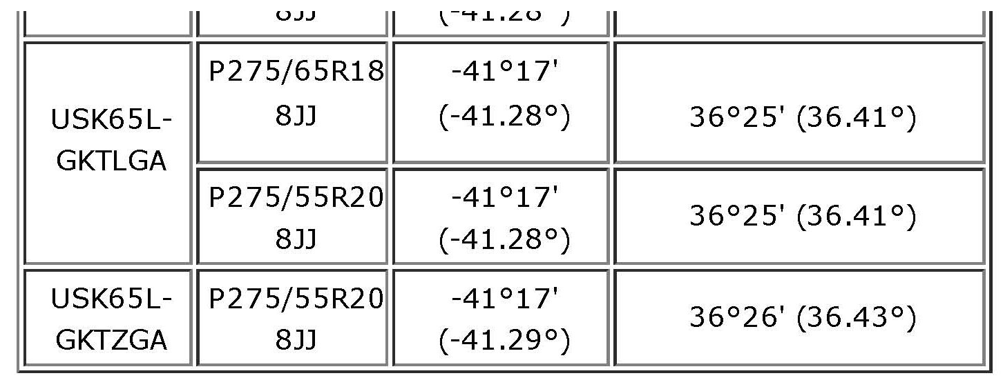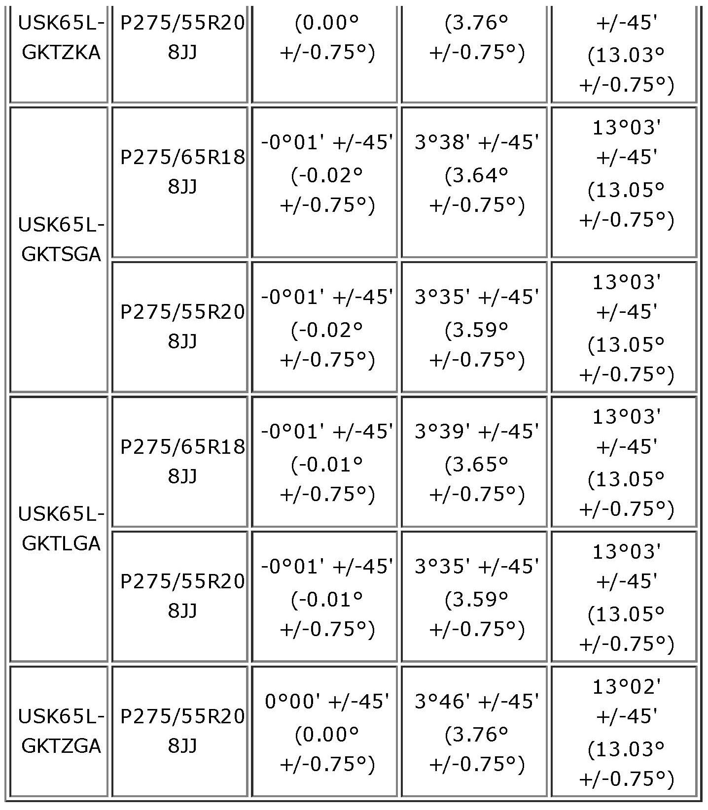 Standard camber, caster, steering axis inclination (unloaded vehicle):