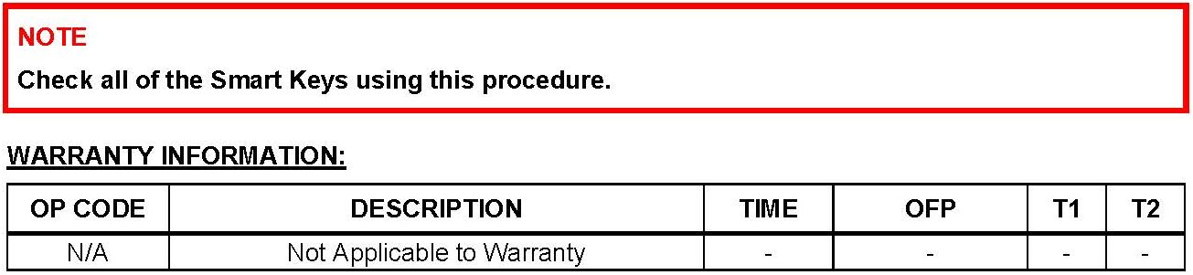 Some 2013 model year vehicles are equipped with a Smart Key system, which allows the customer to enter and start the vehicle without using a mechanical key. To ensure the system is operating properly, the Smart Key functions (Smart Entry and Smart Start) should be inspected during PreDelivery Service (PDS). The following inspection has been developed to confirm the proper operation of the Smart Key system prior to vehicle delivery.