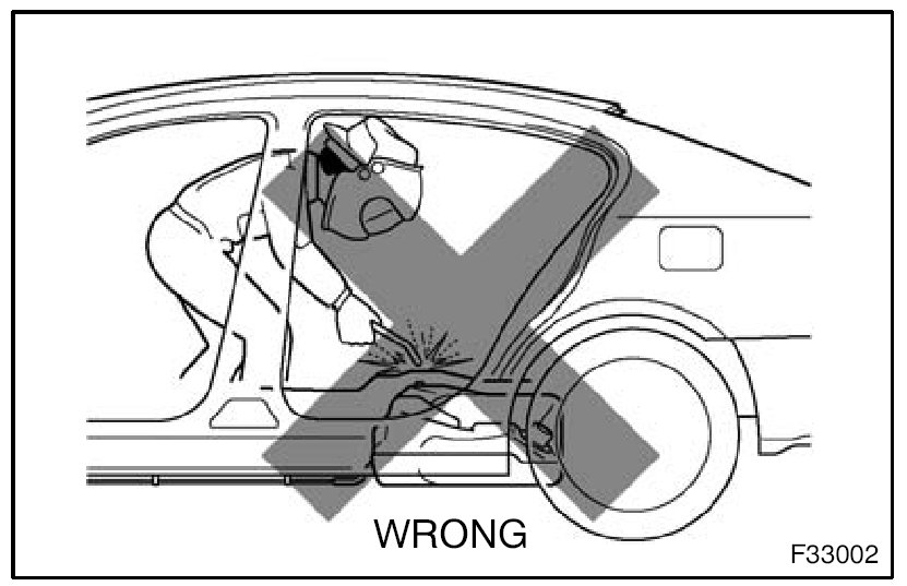 1. When welding, cover glass, seats, carpets, etc. with heat resistant fireproof covers to protect them.