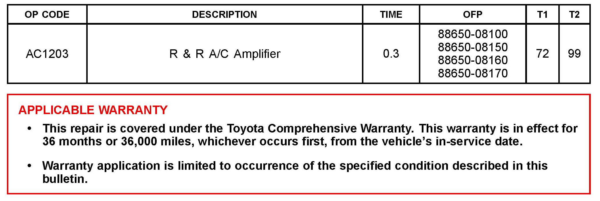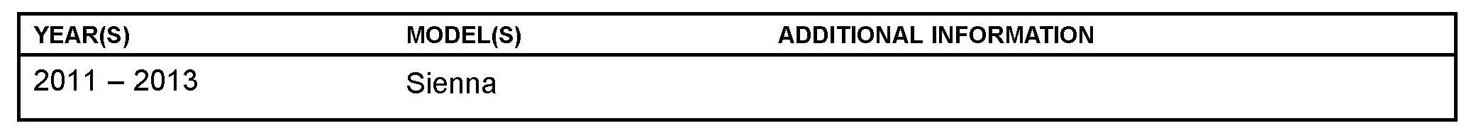 ^ This bulletin does NOT apply to 2013 MY Sienna vehicles equipped with Manual A/C.