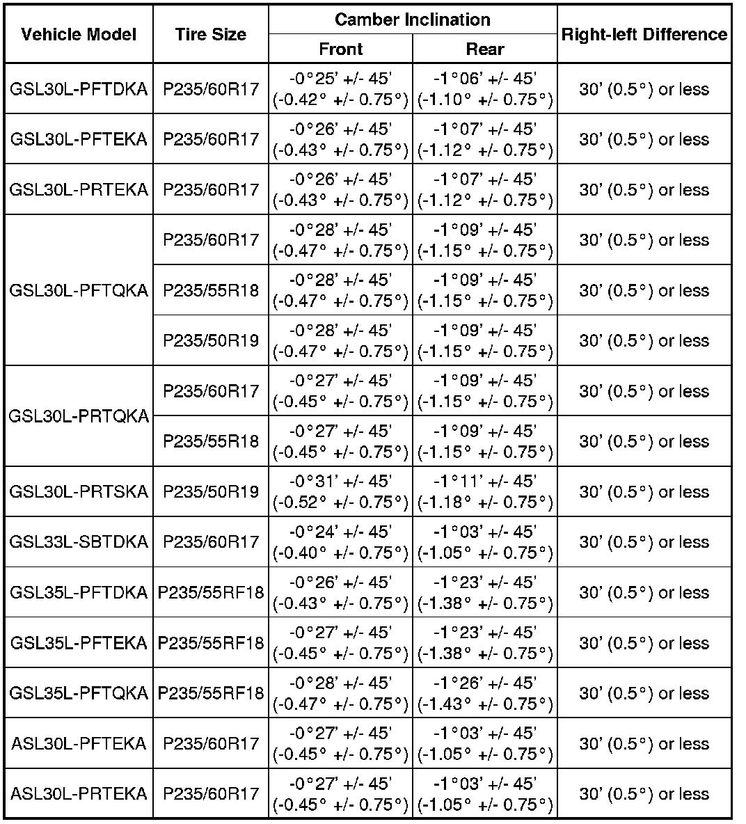 Camber (Unloaded Vehicle)