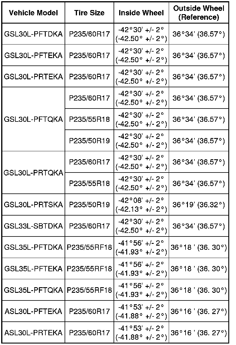Wheel Turning Angle (Unloaded Vehicle)