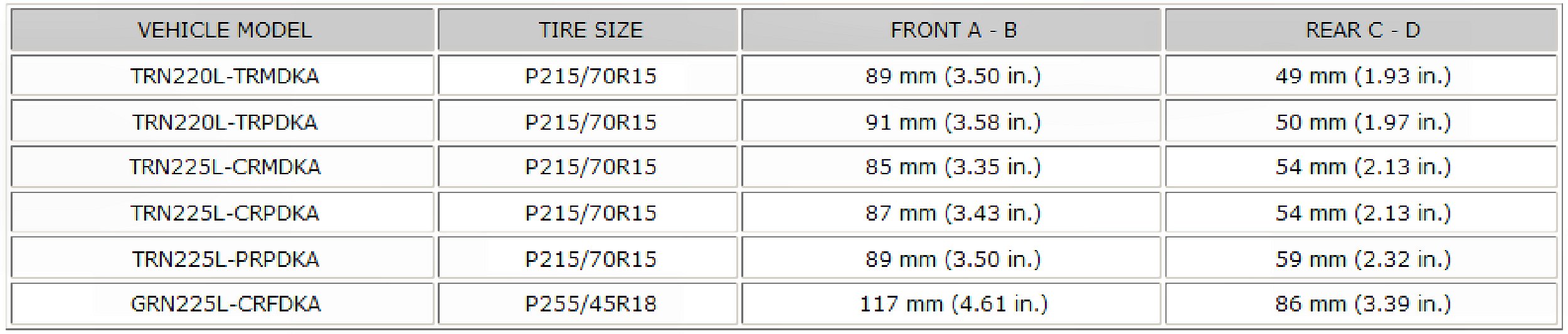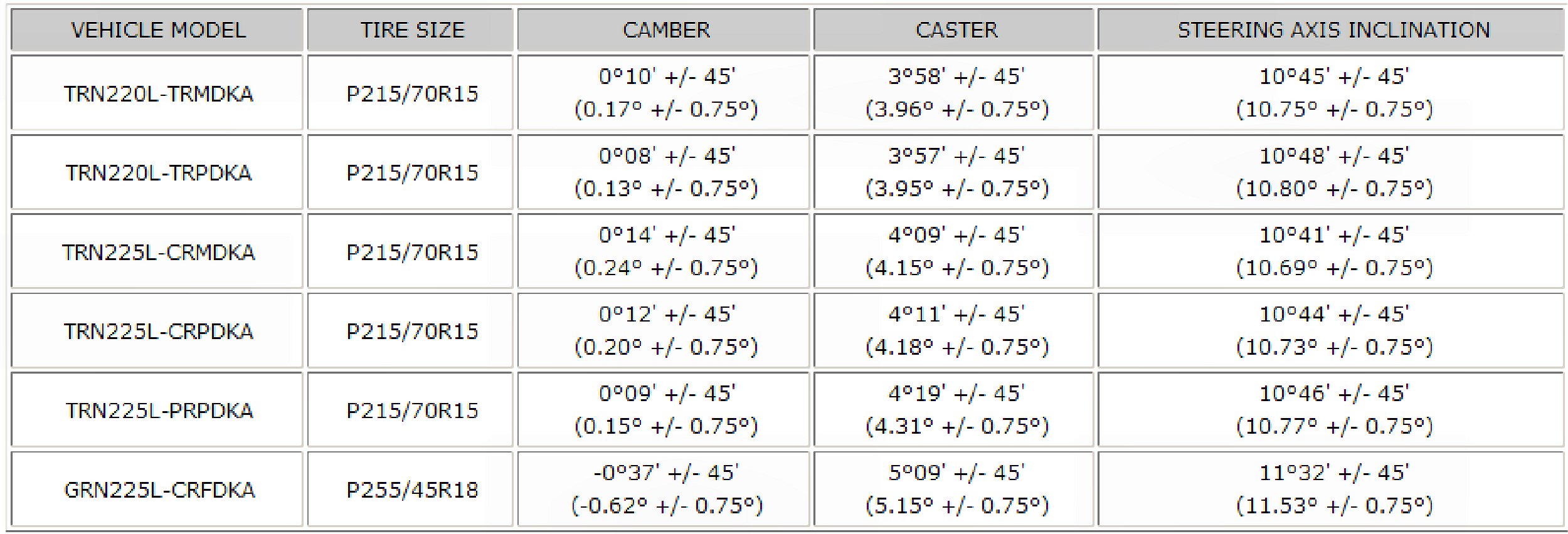 Wheel Alignment Specifications
